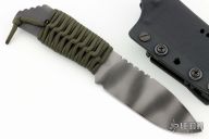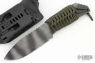 This MFS by Strider Knives features a tiger striped blade with .189" blade thickness and 1.364" blade depth, full tang construction with OD Green paracord wrapped handle. Includes a Kydex sheath. Excellent Condition.