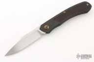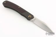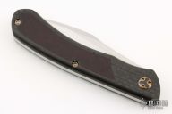 This Slipjoint Michael Burch features a hand rub satin finished clip point blade.  The handle has a carbon fiber frame with richlite inlays over a stainless steel spring.  Has half-stop, flush in all positions. Includes a padded case.  Excellent Condition.