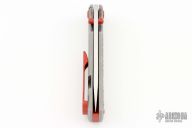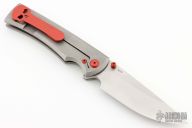 This Chaves Ultramar Liberation features satin finished drop point blade. The handle is made up of frag milled titanium frame with blood orange cerekote hardware and skull pocket clip (positioned for tip up carry), and a matching titanium backspacer. Comes with original box.  Has been been customized by Fanatic Edge.  Excellent condition.