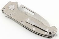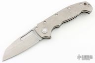 This AD20S by Andrew Demko features a stonewash finish blade with notched thumbrest, thumbhole and dual thumbstuds. The handle has an all Titanium frame with a tip up stainless steel clip and "Shark" lock release on the spine.  Comes with original box. Excellent Condition.