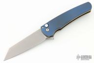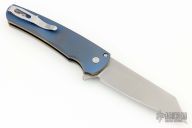 This Malibu model has a blue anodized titanium handle and a sheepsfoot blade.