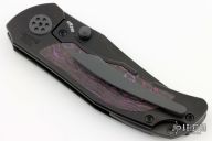 Grace comes in both inlay and non-inlay versions. This particular configuration features purple haze fat carbon inlays, black handles, and a hand ground belt satin Bohler M390 blade. Expertly executed with precision by Reate Knives.