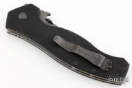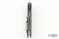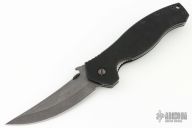 This Hattin from Emerson Knives features a Thunderstorm finished upswept blade with thumb disc and wave features. The handle has black G-10 scales over stonewashed titanium liners, stainless steel tip up clip. Lanyard hole in pommel. Excellent condition.