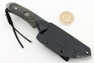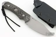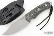 This Hide Fighter by Steve Woods and Wilson Combat features a bead blasted blade .125" black stock and 1.454" blade depth, full tang construction. The handle has black/green G-10 scales. Comes with a kydex sheath, challenge coin and COA. New from maker!