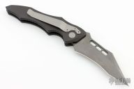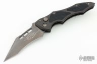 This Vector side opening automatic by Microtech Knives features a black stonewashed blade. bronzed posts. Dated 04/2002 and #1106. Comes with original box, sheath and papers. Has a light scratch on the clip, otherwise excellent condition.