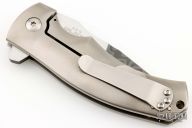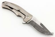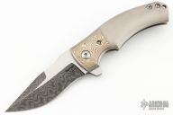 This Valmara Flipper by Les George is a special edition for Wilson Tactical #8 of 10. It features a Damascus blade with a flipper and false top edge.  The handle has an orange peel finished titanium frame with a matching tip up clip and mokume inlay. Nice detent, lockup and blade seating. Very smooth action. Rides on bearings. Comes with nylon zippered case. Excellent Condition.