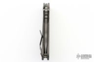 This Mick Strider Performance Series SMF framelock folder features a black finished spear point blade with thumbhole and notched thumbrest. The handle has a flamed titanium frame with titanium clip, tip up carry. Jimping on blade spine. Includes Hinderer "Lock Bar Stabilizer" for maximum reverse lock retention. Nice detent, lockup and blade seating. New condition.