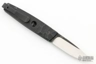 This auto by Zhu Homer features a satin finished drop point blade with tumbled flats and a notched thumbrest. The handle has a sculpted titanium handle with bent titanium tip up clip. Comes with original box. S/N # 151. Excellent condition.