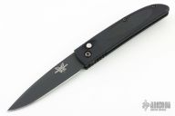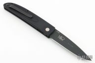 This Mel Pardue 3200 Auto LE 061/100 has a black drop point blade. Handle is black anodized aluminum with A-side G10 overlay, safety on handle spine, and black stainless steel tip up clip. Great action and lockup. Excellent condition. Comes with original box and papers.