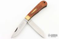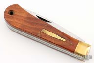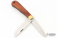 This Remington Bullet from Bowen USA was made for LL Bean. It features two satin finished blades with nail nicks. The handle has brass bolsters, wood covers with brass bullet escutcheon, brass liners and stainless steel springs. Has half-stops. Has some light scratches and patina, otherwise good condition.  #1539