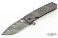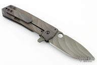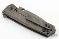 This FIFP (Fear is For Prey) framelock flipper by Crusader Forge features a 3D finished drop point blade with dual thumb hole.  The handle features a tumbled and 3D titanium frame with a matching tip up pocket clip. Includes a padded zippered case. Has a couple light scuffs, otherwise Excellent Condition.