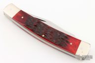 This trapper by Wild Boar features satin finished blades with nail nicks. The handle has nickel silver bolsters, red jigged bone covers, brass liners, steel springs. Has some light scratches, otherwise good condition.
