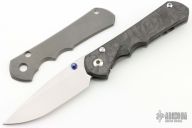 This Large Inkosi from Chris Reeve features a tumble finish blade with dual thumb-studs, marble carbon fiber scale and a bead blast titanium frame. Bead blast titanium clip, tip up carry.  Comes with original box, and papers dated March 21, 2019. Includes a milled MXG clip. Original scale and clip included. Nice detent, and blade seating. Has a couple light scuffs, otherwise excellent Condition.