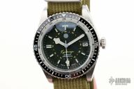 This Custom Seiko watch was made with Seiko parts. Has a 40mm stainless steel case, black dial, stainless/black bezel, canvas strap. Automatic. Has some light scratches, otherwise excellent condition.