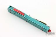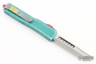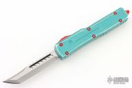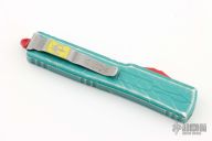 This UTX-70 OTF automatic by Microtech features an Apocalyptic finished blade with a standard edge. The handle has a distressed Bounty Hunter aluminum frame with stainless steel tip down clip. Dated 04/2023 and #980. Comes with original box and papers. Excellent condition.