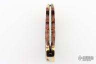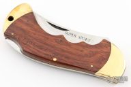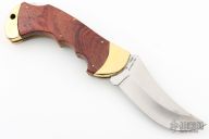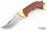 This lockback by Valor has satin finished blade with nail nick. The handle has brass bolsters, rosewood scales, brass liners, stainless steel spring. Has some scratches and patina, otherwise good condition.