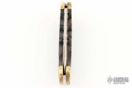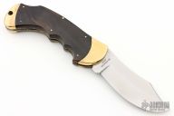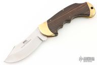 This lockback by Edge Mark has satin finished blade with nail nick. The handle has brass bolsters, rosewood scales, brass liners, stainless steel spring. Has some scratches, otherwise good condition.