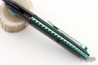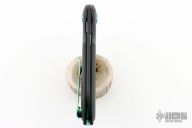 The Max Evolution by Jerry Moen features a black sheepsfoot style blade. The handle is composed of black titanium with anodized accents and matching tip up titanium pocket clip with hidden screws. The lockbar is nicely recessed into the handle scale. Comes with zipper case. Has a few light scuffs, otherwise excellent condition.