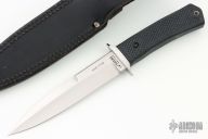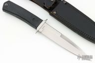 This Spector from Blackjack Knives features a satin finish spear point blade with false top edge, .193" blade stock and 1.112" blade depth, hidden tang construction. The handle is comprised of a stainless steel guard and rubber grip with lanyard tube. Includes black leather sheath with belt loop. Excellent condition. Rare, made in 1990 and limited to 300 pieces.