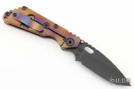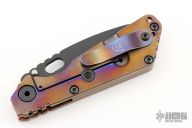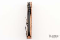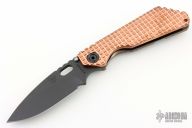 This SNG framelock folder by Mick Strider features a black blade and a frag pattern copper and orange peel finished and anodized titanium frame and tip up titanium clip. Includes a "Lock Bar Stabilizer" for maximum reverse lock retention. Nice detent, lockup and blade seating. New from maker at the 2024 CCKS.