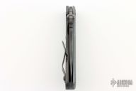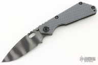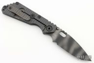 This SNG framelock folder by Mick Strider features a tiger stripe blade and a dimple pattern gray G-10 and flamed titanium frame and tip up titanium clip. Includes a "Lock Bar Stabilizer" for maximum reverse lock retention. Nice detent, lockup and blade seating. New from maker at the 2024 CCKS.