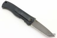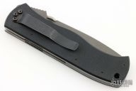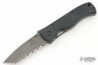This knife is the Benchmade version of an Emerson CQC7. This knife has a chisel ground bead blasted partially serrated titanium blade with carbidized edge, thumbdisc and notched thumbrest. The handle has black G-10 scales, titanium liners and a tip down black stainless steel clip. Has a couple very light scuffs, otherwise excellent condition.