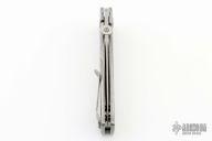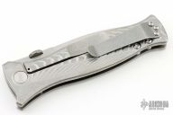 This MK3 by Les George features a mechanical satin finished blade with false top edge and knurled thumbdisc. The handle has a stonewashed titanium frame with Morph pattern and a titanium tip up clip. Nice detent, lockup and blade seating. Comes with a zippered case. New condition.