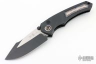 This D/A Pariah Prototype by Heretic Knives features a two-tone blade with notched thumbrest and dual thumbstuds. The handle has a black aluminum frame with flamed titanium insert, pivot collars and tip up clip with ceramic ball. Comes with original box. Has some minor wear on the finish near the button, has some wear on a couple screws, otherwise excellent condition. The box is signed and #4. This knife is #004.