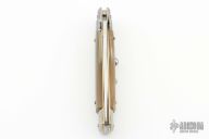 This Swivel Bolster features a 4mm flat ground blade. The handle has stainless steel bolsters and pommel with honey horn scales over brass liners and stainless steel backspacer. Excellent Condition.