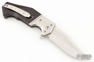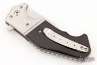 I specialize in large tactical flipper folders. I hand grind every knife blade free hand on hollow grinding wheels of various sizes. My handles are profiled shaped and contoured by hand on the belt sander. My custom pocket clips are hand ground from thick titanium which I designed to ride low in your pocket because I wanted my knives to have a secure fit when being carried. When I design my knives I use straight lines with a futuristic look using high tech materials such as: Lightning strike carbon fiber, titanium, G10 and powdered steels.