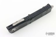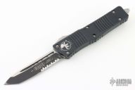 This Combat Troodon OTF automatic features a black S/E blade with a partially serrated edge. Black stainless steel clip, tip down carry and hardware. Glass breaker. Serial number 26603 and dated 12/2019. Has heavy scuffs/scratches otherwise the knife is in okay condition.  This knife would make a great user.