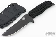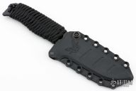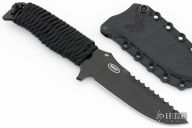 This Fixed Adamas fixed blade combat knife was designed by Shane Sibert. The black finished D2 steel drop point blade has a plain cutting edge and jimping on the spine. The handle is skeletonized with optimally positioned grooves. The Fixed Adamas knife also comes with a black molded sheath with secondary locking strap and tension screw for secure storage and custom tuned deployment.