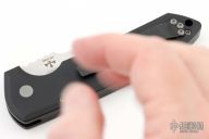 This Rockeye Auto by Pro-Tech has a two-tone blade with notched thumbrest. The handle has a black textured aluminum frame with a matching steel tip up pocket clip. Typical flawless Pro-tech mechanics and blade seating. Comes with original box and papers. Has a scuff on the clip, otherwise excellent condition.