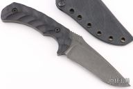 Made from CMP 154 steel, this blade features a short swerve grind, which reinforces the tip and minimizes resistance when penetrating tough surfaces. With an overall length of 8.5”, a weight of 7.5 oz. and blade thickness of 0.1875”, the Mullet successfully fills the gap in our assortment, as a midsized, fixed blade, slightly larger and heavier than our Krypteia. The Mullet is fitted with G10 or ebony handles and a Toor Knives signature texture, leaving large enough flutes for an extremely comfortable in-hand grip.