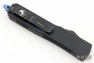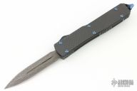 This Ultratech OTF by Microtech Knives features a D/E Damascus blade with a standard edge. The handle has a black aluminum frame with carbon fiber top and a black tip down stainless steel clip. Anodized titanium hardware and glass breaker. S/N 029 dated 12/2012. Has some scuffs and scratches, great condition otherwise.