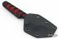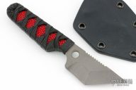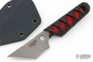 This Tanto Dashi from Sam Eddleman features a stonewashed and acidwashed blade with notched thumbrest. The handle is comprised of black Japanese style wrap over red rayskin. Includes kydex neck sheath. Excellent condition.