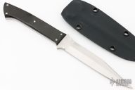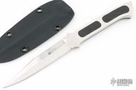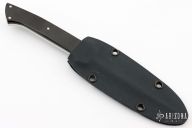 This Boot Knife by Crawford Knives features a hand rub satin finished blade with sharpened top edge, .181" blade stock and .758" blade depth, full tang construction. The handle has been skeletonized and then a black linen micarta scale was attached to one side and it also fills the holes in the handle. Comes with a kydex boot sheath. Has some scratches on the blade, otherwise good condition.
