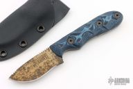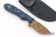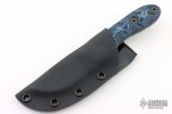 This Knife by Barry Dawson features a drop point blade with .125" blade stock and 1.054" blade depth, full tang construction. The handle has blue/black g10 scales. Comes with a kydex sheath. Has some light scuffs, excellent condition otherwise.