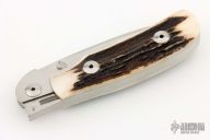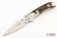 This One Hand Knife features stag scales and a satin finished blade. Has a couple light scuffs, otherwise excellent condition.