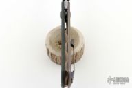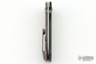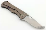 This Rostrum by John Gray features a satin finished Magnacut blade with thumbstuds and thumbhole. The handle has a carbon fiber and barked and anodized titanium frame and titanium clip, with a textured titanium backspacer. Has a stainless steel lockface insert and overtravel stop. Nice detent, lockup and blade seating. New from maker at the 2024 Blade Show Texas.