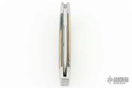 This Sowbelly by Tim Robertson features a hand rub satin finished blade with nail nick. The handle has stainless steel bolsters with integral liners, mammoth ivory covers with black liners, stainless steel escutcheon, stainless steel spring. Has half-stop, flush in all positions. Comes with a zippered case. New from maker at the 2024 Blade Show Texas.