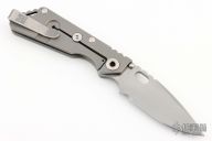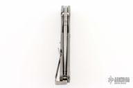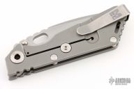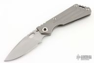 This Mick Strider Performance series SNG framelock folder features a silver coated spear point blade with thumbhole and notched thumbrest. The handle has a titanium frame with titanium deep carry clip, tip up carry. Jimping on blade spine. Includes Hinderer "Lock Bar Stabilizer" for maximum reverse lock retention. Excellent lockup, detent, and blade seating.Excellent Condition.