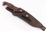 This Custom Shop Steel Heart from Busse Combat Knife Company features a satin finished blade, .248" blade stock and 1.886" blade depth, full tang construction with serrations. The handle has black/red G-10 scales with tube pins over full tang construction. Exposed tang pommel with lanyard hole. Comes with very nice Savage Made leather sheath. Has some light scuffs and scratches, excellent condition otherwise.