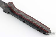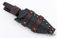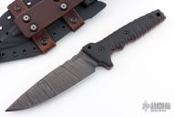 This M-15 by Miller Bros Blades features a drop point blade with swedge, notched thumbrest made from Z-Wear PM steel, .324" blade stock 1.561" blade depth, full tang construction. The handle has textured black G-10 scales with red liners, notched tang, lanyard hole at the butt. Comes with a kydex/leather sheath. Comes with COA dated 2024. New Condition.