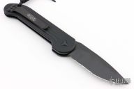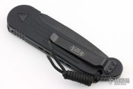 This LUDT side opening automatic by Microtech has a black blade with a partially serrated edge and a black aluminum frame. This tactical version has black fittings. Stainless steel clip. Dated 09/2021 and serial number 24767. Comes with original box and papers. Has a couple light scuffs. Excellent condition otherwise.