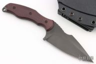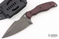 This SB1 by Fox Cutlery is a Borka Blades design, it features a black blade with false top edge and notched thumbrest, .199" blade stock and 1.545" blade depth, full tang construction with red micarta scales. Comes with kydex sheath with belt clip and original box. Excellent Condition.