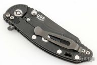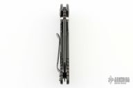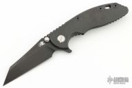 This 3" wharncliffe ground XM-18 from Rick Hinderer features a battle black blade. Battle Black titanium frame and pocket clip. Dual thumb studs and notched thumbrest, anodized titanium reversible pocket clip. Strong lock up, nice detent and blade seating is center. Includes original box and extra hardware. Has a few light scuffs, box is in rough shape (for those of you who that matters to) otherwise excellent condition.