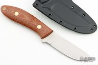This K-57 Evo Drop Point by Dozier Knives features a satin finished blade with .133" blade stock and 1.053" blade depth, full tang construction. The handle has brown canvas micarta scales with brass pins and lanyard hole. Comes with kydex sheath with belt clip. New from maker.