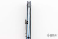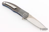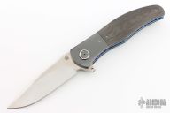 This HB13 linerlock flipper by Herucus Blomerus features a hand rub satin finished blade with polished flats and flipper. The handle has Zirconium bolsters with titanium pivot collars, Black Camo Fat Carbon scales, anodized titanium liners, Black Camo Fat Carbon backspacer and a tip up titanium clip. Blade is centered when closed, nice detent and lockup. Very smooth flipping action, rides on IKBS. Comes with leather case and COA. New from maker at the 2024 Blade Show Texas.