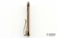 This Bartlow Skinner front flipper from Brad Zinker features a Vegas Forge Virus Damascus blade with checkered thumbrest and flipper. The handle has mammoth ivory scales, anodized titanium liners laser engraved interiors, anodized tip up clip, floating matching Damascus backspacer. Nice detent, lockup and blade seating, rides on bearings. Includes a padded zippered case. New from maker at the 2024 Blade Show Texas.